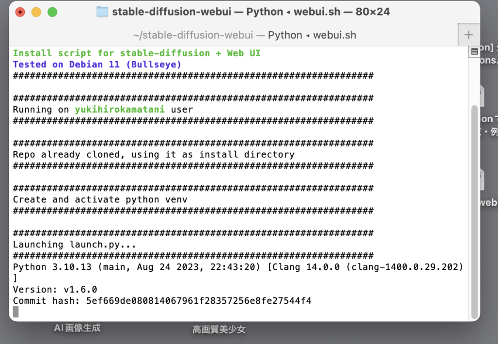 Stable Diffusion Web UIの新規ターミナルが表示されますので、