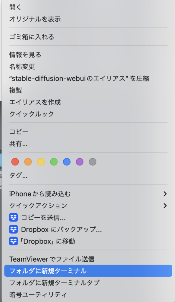 Stable Diffusion Web UIのフォルダを右クリックし、フォルダーに新規ターミナルをクリックします。